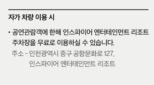 공연 장소: 인스파이어 아레나, 인천광역시 중구 공항문화로 127