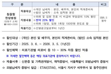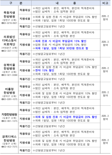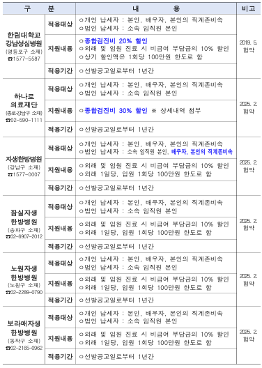 ✔ 병원의료비 할인 – 협약 병원에서 의료비 감면
