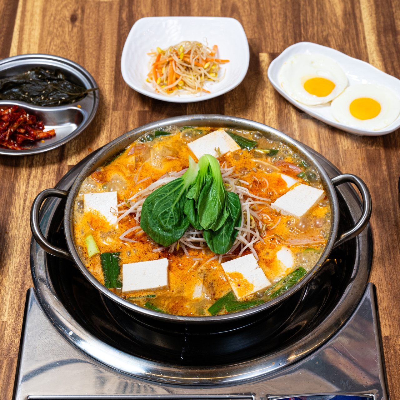 무엇보다 테이블마다 감칠맛 나는 노릇노릇한 부대찌개가 끓고 있는 모습은 보는 것만으로도 군침을 돌게 합니다.