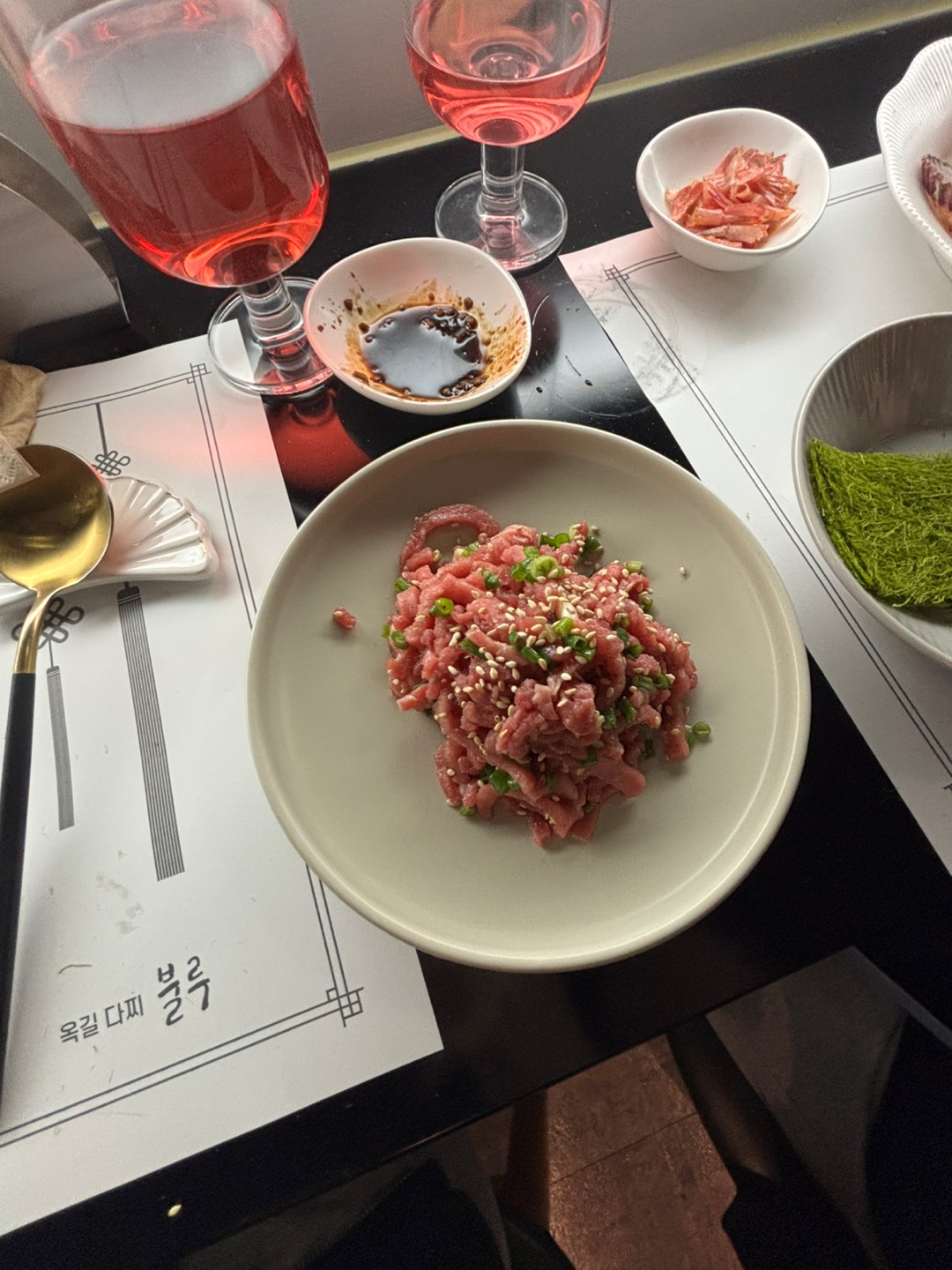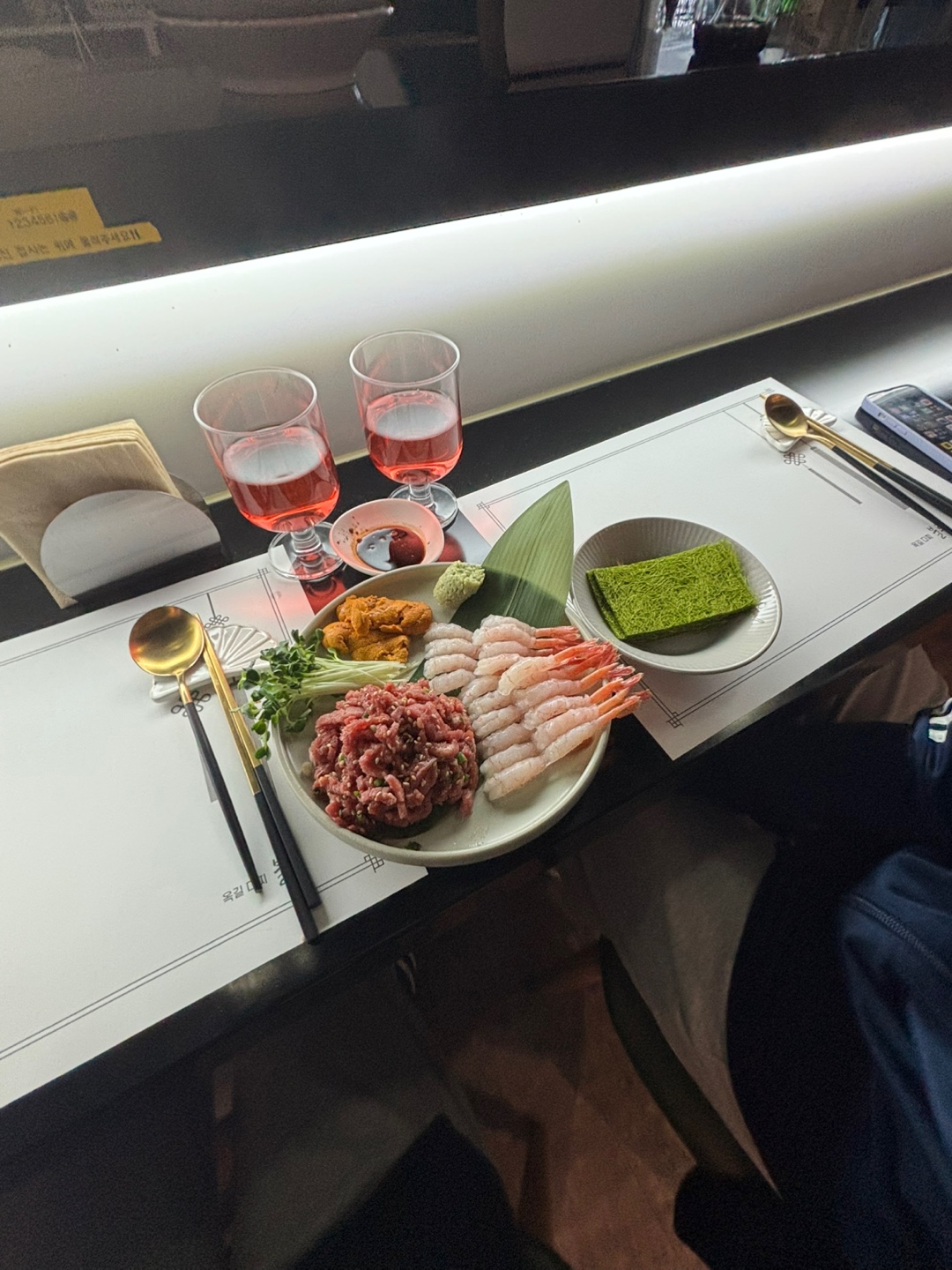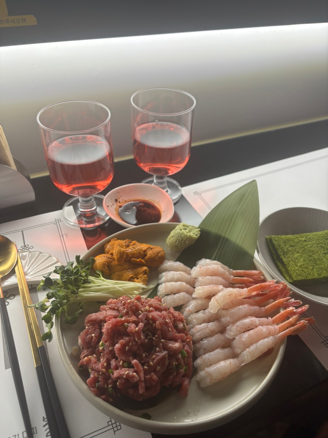 아, 그리고 하나 더! 불루에서의 특별한 경험을 더하기 위해 새우구이와 단새우&우니, 그리고 육회도 정말 맛있었어요.