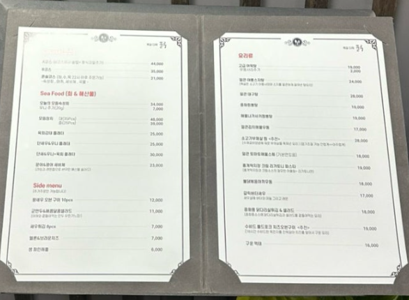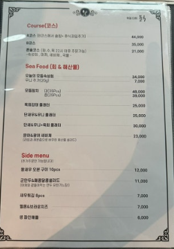 하지만 저는 코스보다는 여러 가지 맛을 보고 싶어서 단품으로 주문하기로 했어요.
